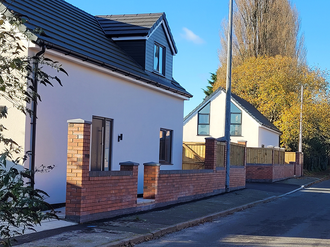 The finished dwellings make an attractive and contemporary addition to a street with their modern white rendered wall finish and new fibre cement slate roofs.